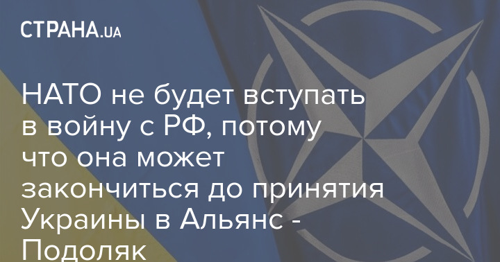 На вопрос журналиста, будет ли вынуждено НАТО вступить в войну против России в случае принятия Украины в Альянс, Подоляк ответил: "Я думаю, что войну можно будет закончить немного быстрее, чем мы пройдем все бюрократические процедуры".