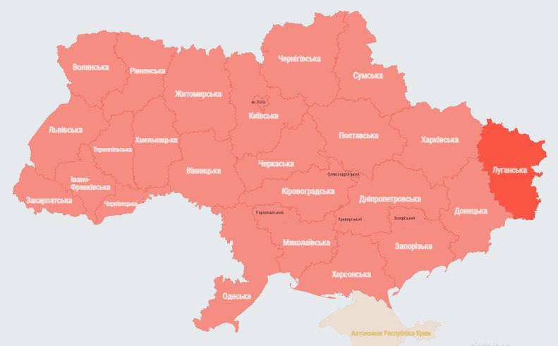 07.37 Почти по всей Украине воздушная тревога, кроме Крыма.