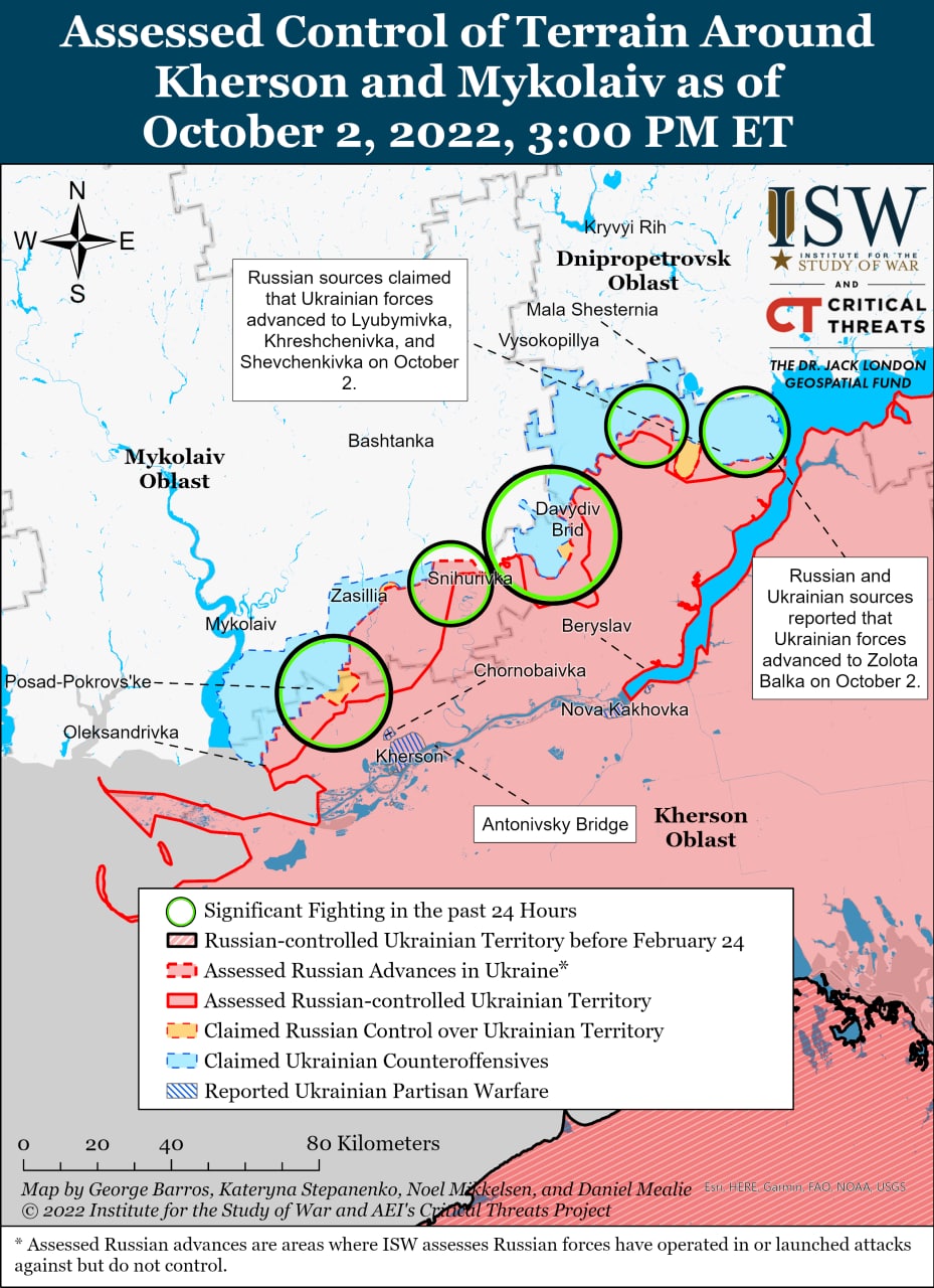 Южнее украинские силы возобновили контрнаступление на северо-востоке в Херсонской области.