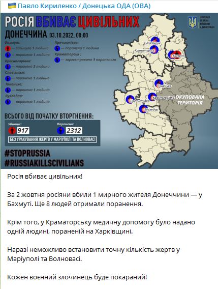 В понедельник, 3 октября, в Украине идет уже 222-й день с начала полномасштабного вторжения РФ.