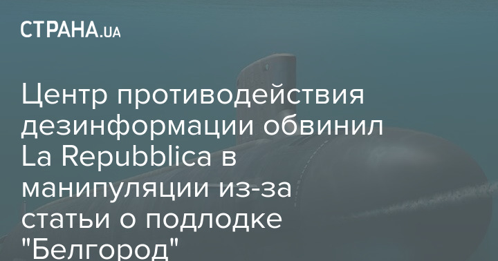 В Центре противодействия дезинформации (ЦПД) СНБО обвинили итальянскую газету La Repubblica в "информационной манипуляции" из-за статьи о выходе из базы ВМФ РФ подлодки "Белгород", которая несет ядерные торпеды "Посейдон", способные вызвать ядерными ударами сильнейшее цунами.