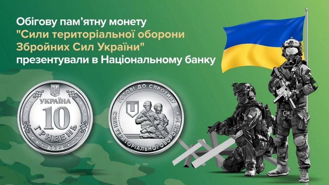 Нацбанк отчеканил памятные монеты "Силы теробороны ВСУ" номиналом в 10 гривен. Фото