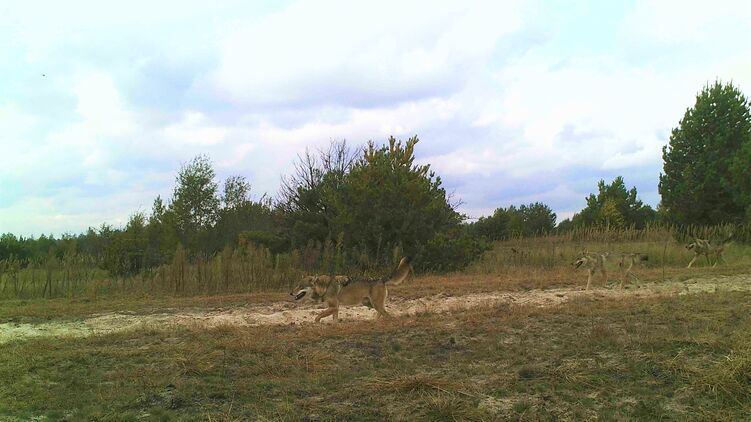 Чернобыльский радиационно-экологический биосферный заповедник опубликовал снимок фотоловушки со стаей волков. На нем едва различимы три  особи, так как они благодаря окрасу практически сливаются с ландшафтом.