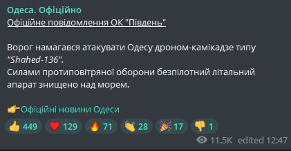 23:46 Одесские паблики пишут о работе ПВО.