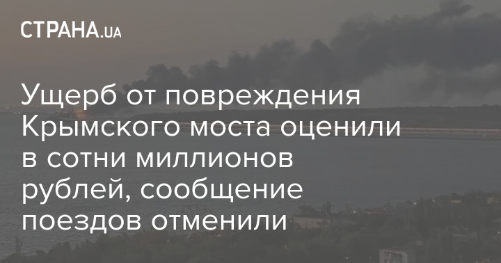 "Всероссийский союз страховщиков оценивает ущерб от ЧП на Крымском мосту, произошедшего в субботу, в 200-500 миллионов рублей".