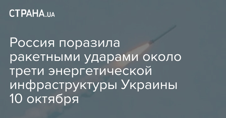 Около 30% энергетической инфраструктуры Украины с понедельника 10 октября было поражено российскими ракетами.