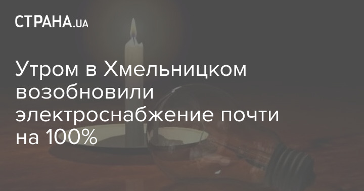"По состоянию на 08.00 электроснабжение в Хмельницкой тергромаде возобновлено почти на 100%. Могут оставаться неисправности во внутренних сетях" - написал глава ОВА,