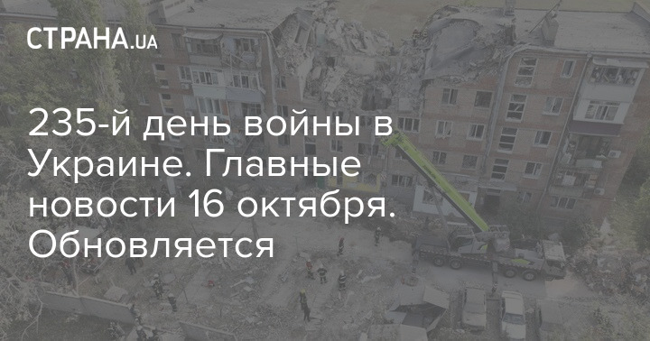В воскресенье, 16 октября, в Украине идет уже 235-й день со дня полномасштабного вторжения РФ.