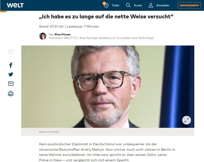 11:29 Уходящий с поста посол Украины в Германии Андрей Мельник заявил, что страны Евросоюза могли бы создать "европейский танковый альянс". По его мнению, это позволило бы передать Украине около 200 танков Leopard-2.