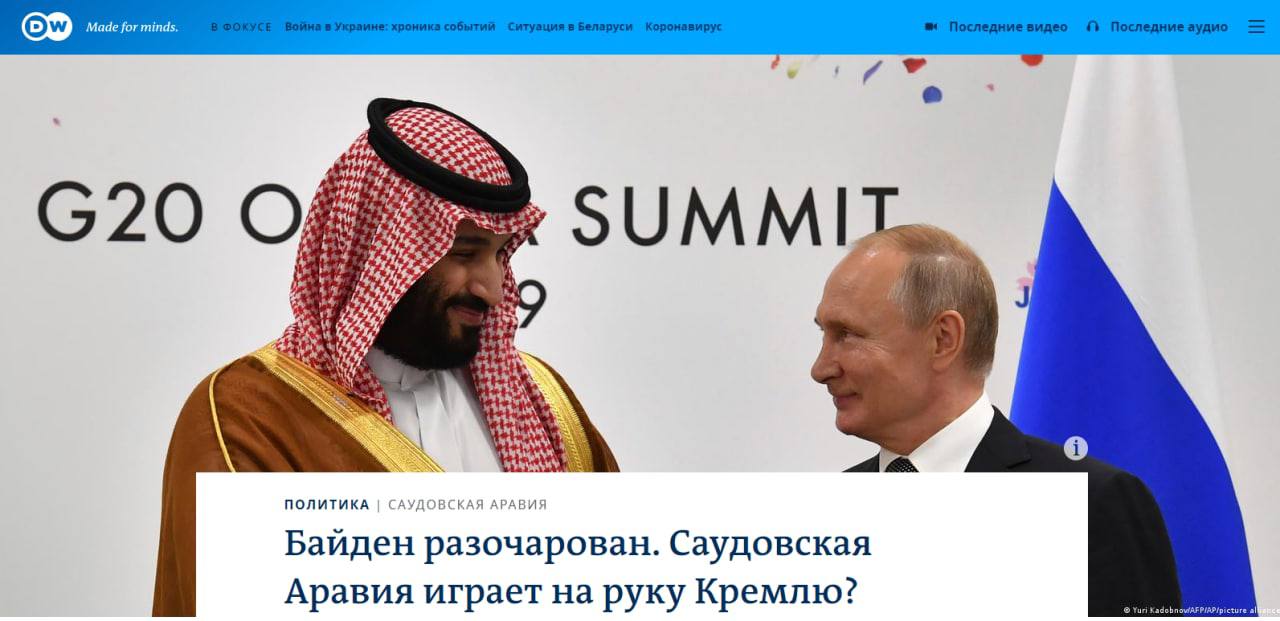 20:44 В Саудовской Аравии поражены обвинениями США, что королевство поддерживает Россию в войне против Украины.