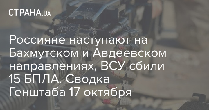 В Генеральном штабе Вооруженных сил Украины опубликовали оперативную сводку с фронта по состоянию на 06:00 17 октября. Сообщается, что российские войска пытаются наступать в Бахмутском и Авдеевском направлениях.