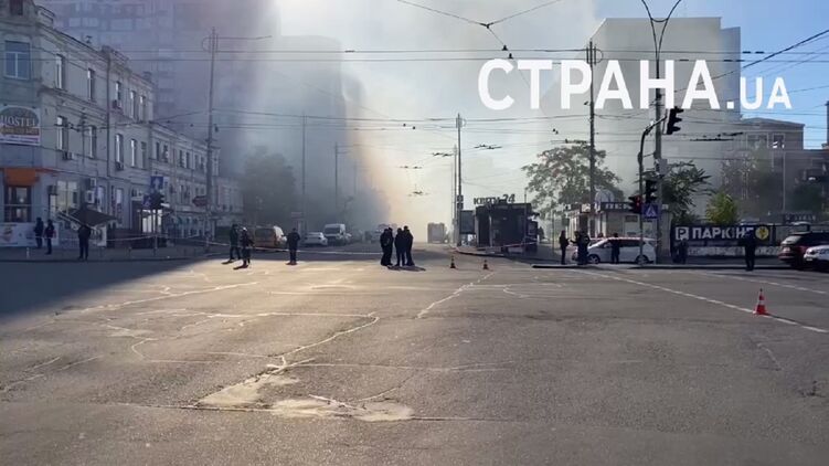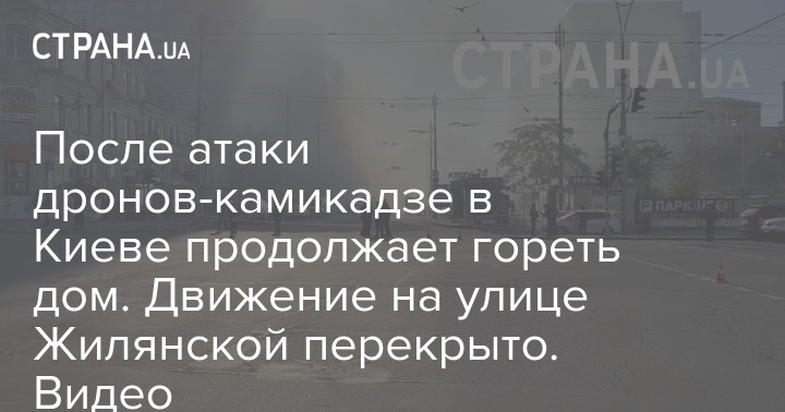 Пожар в Киеве после атаки дронов-камикадзе. Скриншот видео "Страны"
