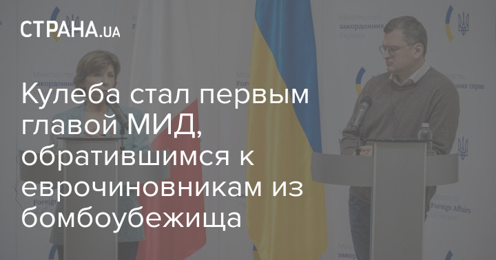 Глава МИД Украины Дмитрий Кулеба заявил, что он, вероятно, первый министр иностранных дел, который обратился к заседанию совета министров иностранных дел Евросоюза из бомбоубежища из-за воздушной тревоги, которая продолжалась в момент его обращения.