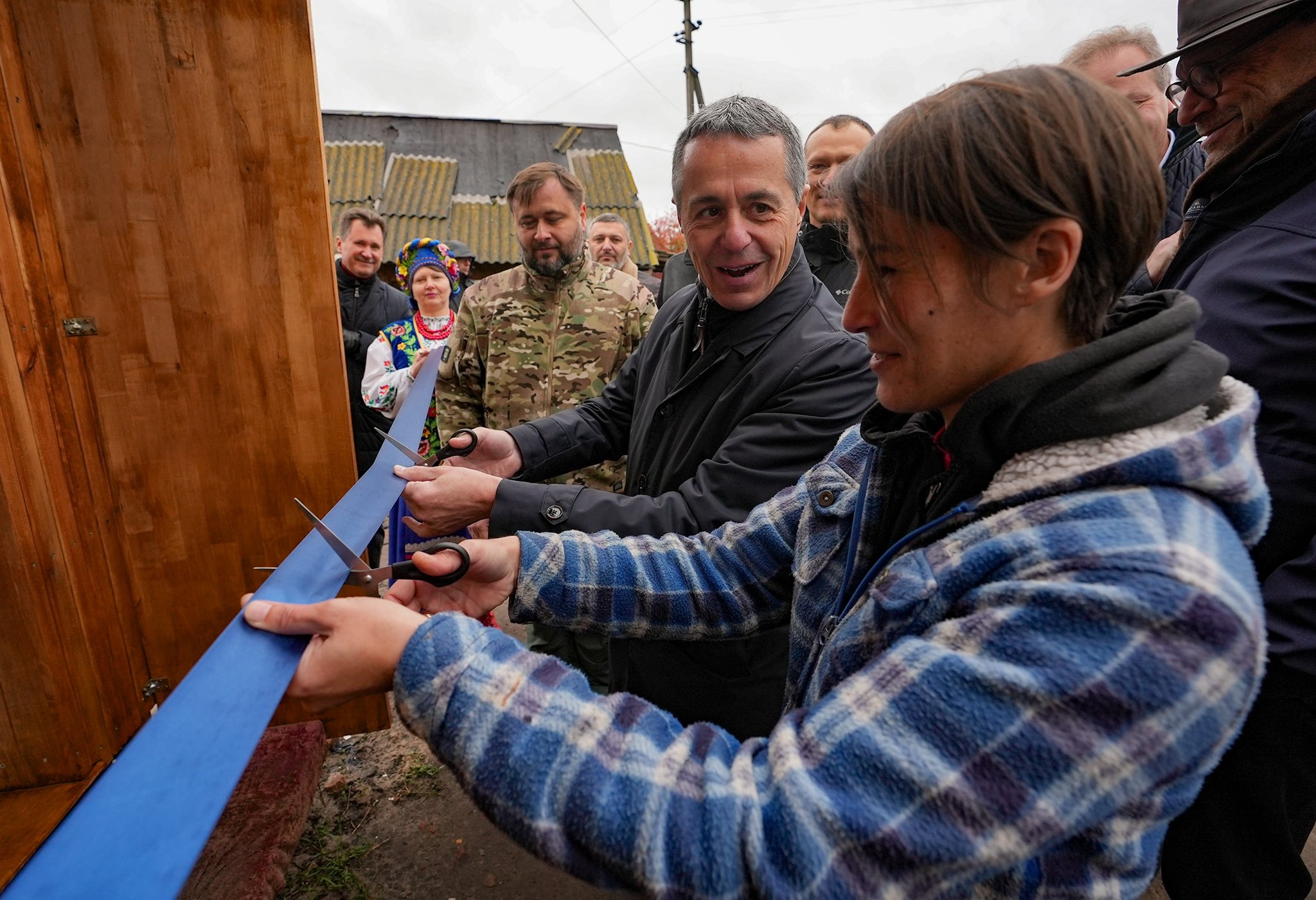 Прибывший в Украину президент Швейцарии посетил Бородянку и Иванков в Киевской области. Фото