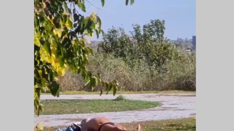 Появилось видео, как в Николаеве местный житель спокойно загорает в октябре под звук воздушной тревоги