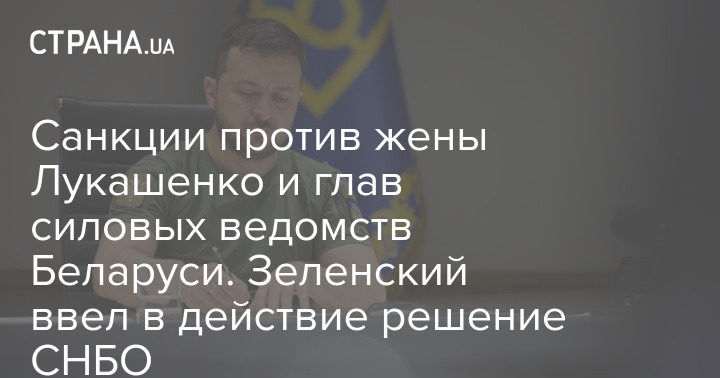 Президент Украины Владимир Зеленский ввел в действие решение Совета национальной безопасности и обороны (СНБО) о санкциях в отношении супруги президента Беларуси Александра Лукашенко Галины. Кроме того, санкции введены против глав белорусских силовых ведомств, а также предприятий.