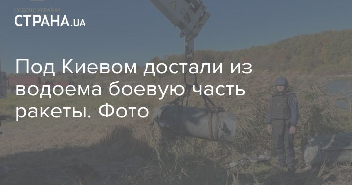 Под Киевом достали из водоема боевую часть ракеты. Фото