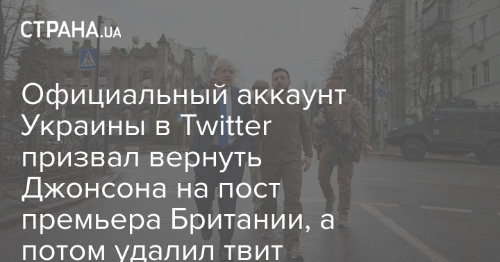 Официальная страница Украины в Twitter призвала вернуть на пост премьера Британии Бориса Джонсона, но потом с нее этот твит был удален.