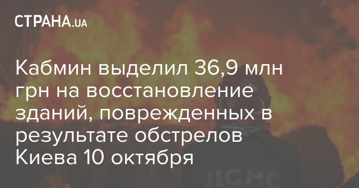 Кабинет министров Украины выделил 36,9 миллионов гривен для ликвидации последствий ракетных обстрелов Киева 10 октября и восстановления поврежденных объектов.