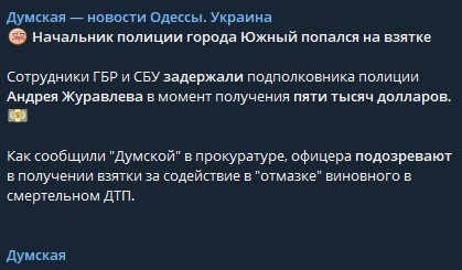 Начальник полиции города Южный попался на взятке в $5 тысяч за "отмазку" виновного в смертельном ДТП - СМИ