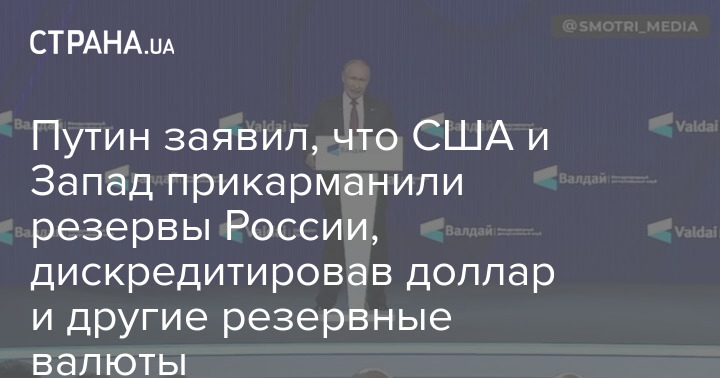 Путин заявил, что США и Запад прикарманили резервы России, дискредитировав доллар и другие резервные валюты