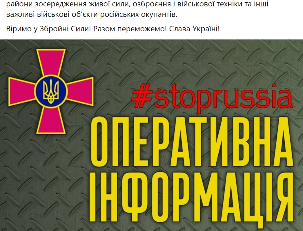 Об этом сообщается в утренней сводке Генштаба ВСУ.