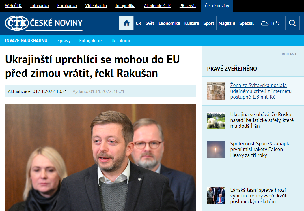 Об этом заявил глава МВД Чехии Вит Ракушан, которого цитируют чешские СМИ.
