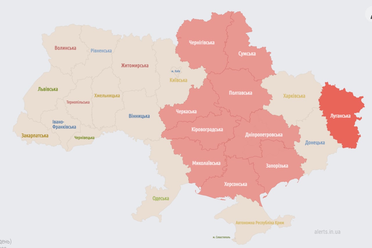 9:48 В Запорожской, Днепропетровской и Николаевской областях объявили воздушную тревогу.