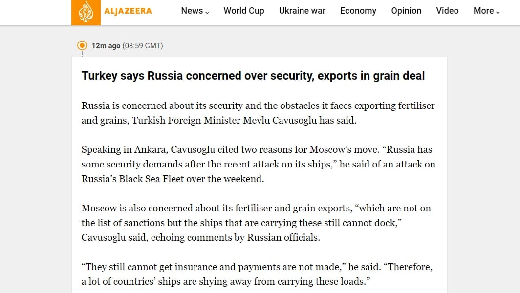 12.20 Два взаимоисключающих заявления о зерновом коридоре из Турции и России.