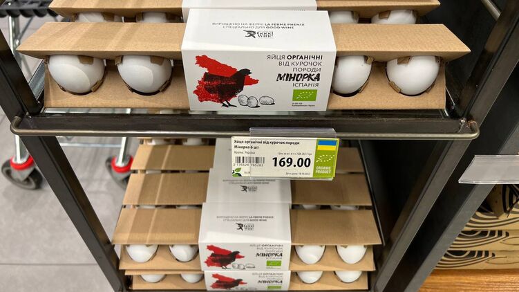 В сети киевских супермаркетов GoodWine покупатели заметили испанские органические яйца по 169 гривен за шесть штук. То есть цена десятка выходит 281 гривна 60 копеек.