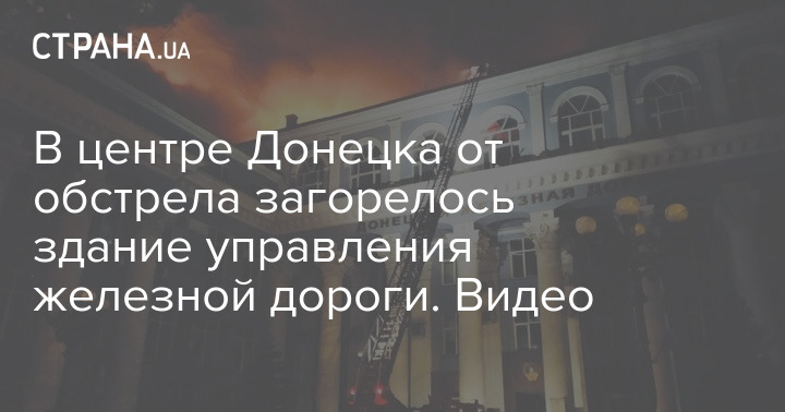 В центре Донецка от обстрела загорелось здание управления железной дороги. Видео