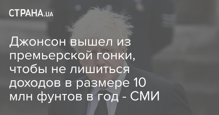 Джонсон вышел из премьерской гонки, чтобы не лишиться доходов в размере 10 млн фунтов в год - СМИ