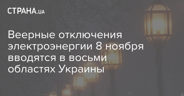 Веерные отключения электроэнергии 8 ноября вводятся в восьми областях Украины