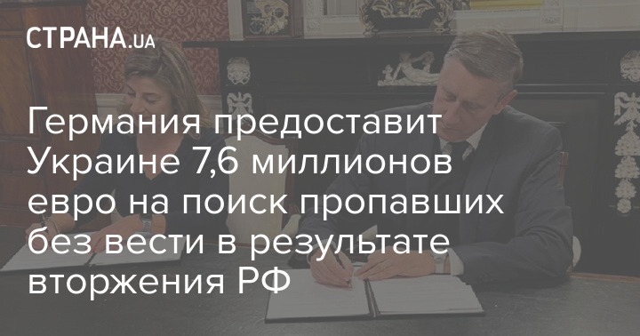 Германия предоставит Украине 7,6 миллионов евро с целью помочь найти без вести пропавших людей. Об этом сообщило посольство Германии в Украине в своём Twitter.