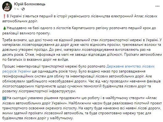 В Украине появится атлас лесных автомобильных дорог. В ближайшее время специалисты реализуют пилотный проект отдельного лесхоза в Карпатском регионе.