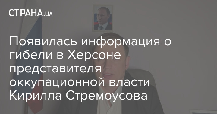 Также о гибели Стремоусова в ДТП сообщила назначенная россиянами "замруководителя Военно-гражданской администрации" Херсонской области Екатерина Губарева.