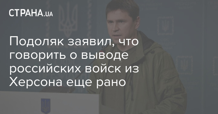 Советник главы Офиса президента Украины Михаил Подоляк заявил, что пока слишком рано говорить о выводе российских войск с правого берега Днепра.