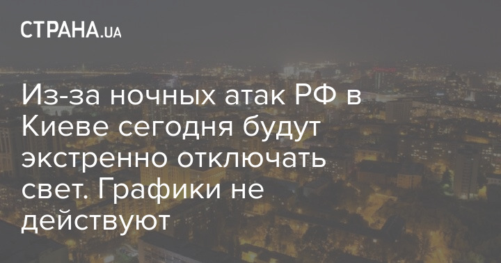 Из-за ночных атак РФ в Киеве сегодня будут экстренно отключать свет. Графики не действуют
