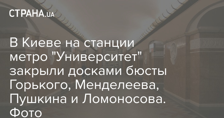 На станции метро "Университет" в Киеве закрыли досками бюсты Максима Горького, Дмитрия Менделеева, Александра Пушкина и Михаила Ломоносова.
