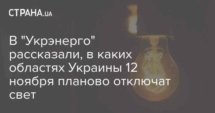 Плановые веерные отключения света в субботу, 12 ноября, будут в Киеве, Киевской, Черниговской, Черкасской, Житомирской, Сумской, Харьковской и Полтавской областях.