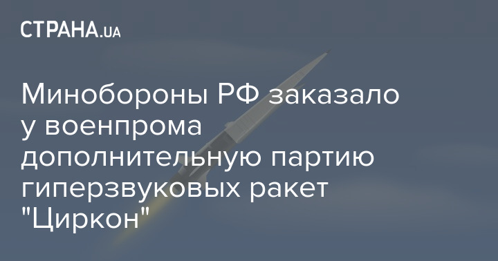 Минобороны РФ заказало у военпрома дополнительную партию гиперзвуковых ракет "Циркон"