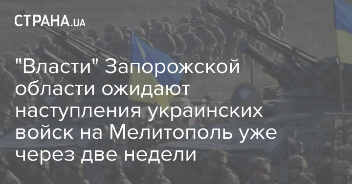 "Власти" Запорожской области ожидают наступления украинских войск на Мелитополь уже через две недели