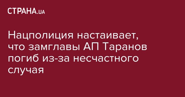 В Нацполиции в качестве основной версии причины гибели заместителя главы Администрации Президента Андрея Таранова рассматривают несчастный случай. Об этом в интервью "Украинским новостям" заявил Андрей Крищенко, начальник Главного управления Нацполиции в столице