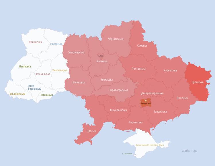 Во многих регионах, включая Киев, объявлена воздушная тревога.