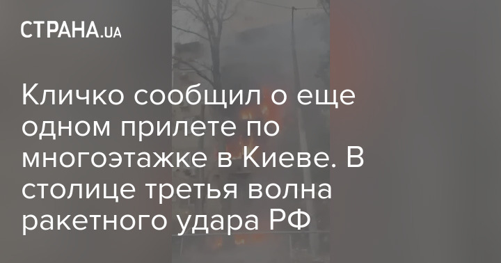 Мэр Виталий Кличко сообщает о еще одном попадании по многоэтажке в Печерском районе.