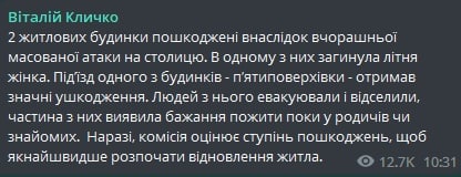 10.43 Мэр Киева о повреждениях в городе в результате вчерашней атаки: