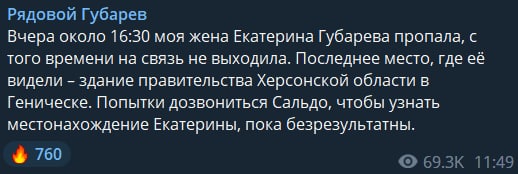 Последнее сообщение в телеграм-канале Губаревой было за сутки до ее исчезновения - 14 ноября в 17:25.