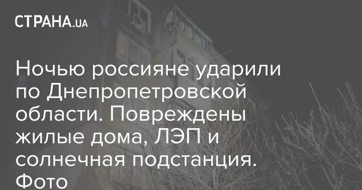 Ночью россияне ударили по Днепропетровской области. Повреждены жилые дома, ЛЭП и солнечная подстанция. Фото