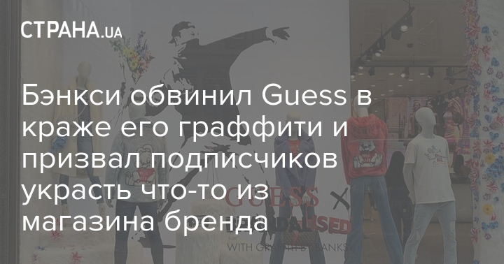 Британский анонимный уличный художник Бэнкси, который на днях нарисовать семь граффити в Киеве и Киевской области, призвал магазинных воров украсть что‑то из бутиков американского бренда Guess.