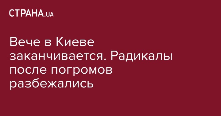 По состоянию на 21.30 участники марша протеста в Киеве, во время которого произошел ряд погромов, уже почти полностью разошлись. Об этом сообщают корреспонденты "Страны".